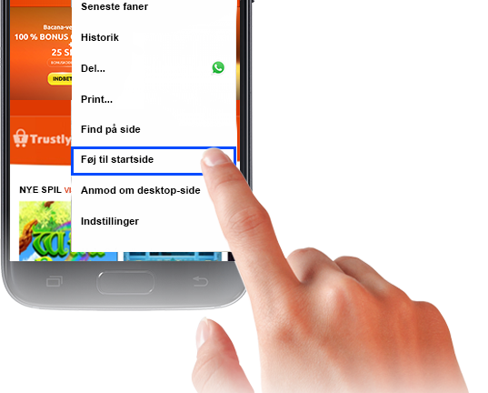 Vil du gerne føje BacanaPlay direkte til din hjemmeskærm eller din tablets hjemmeskærm? Klik på guiden herunder.