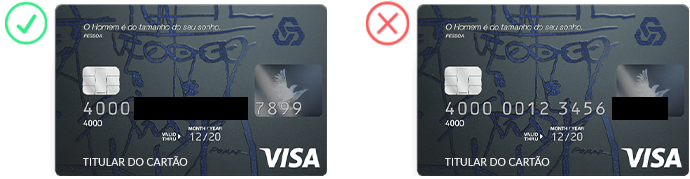 - Only the first 4 digits and last 4 digits of the card must be visible